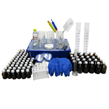 В набор входят: весы лабораторные электронные 200 г, спиртовка лабораторная, воронка коническая, палочка стеклянная, пробирка ПХ-14 (10 штук), стакан высокий с носиком ВН-50 с меткой (2 штуки), цилиндр измерительный 2-50-2 (стеклянный, с притертой крышкой), штатив для пробирок на 10 гнёзд, зажим пробирочный, шпатель-ложечка (3 штуки), набор флаконов для хранения растворов и реактивов (объем флакона 100 мл - 5 комплектов по 6 штук, объем флакона 30 мл - 10 комплектов по 6 штук), цилиндр измерительный с носиком 1-500 (2 штуки), стакан высокий 500 мл (3 штуки), набор ершей для мытья посуды (ерш для мытья пробирок - 3 штуки, ерш для мытья колб - 3 штуки), халат белый х/б (2 штуки), перчатки резиновые химические стойкие (2 штуки), очки защитные, фильтры бумажные (100 штук), горючее для спиртовок (0,33 л).