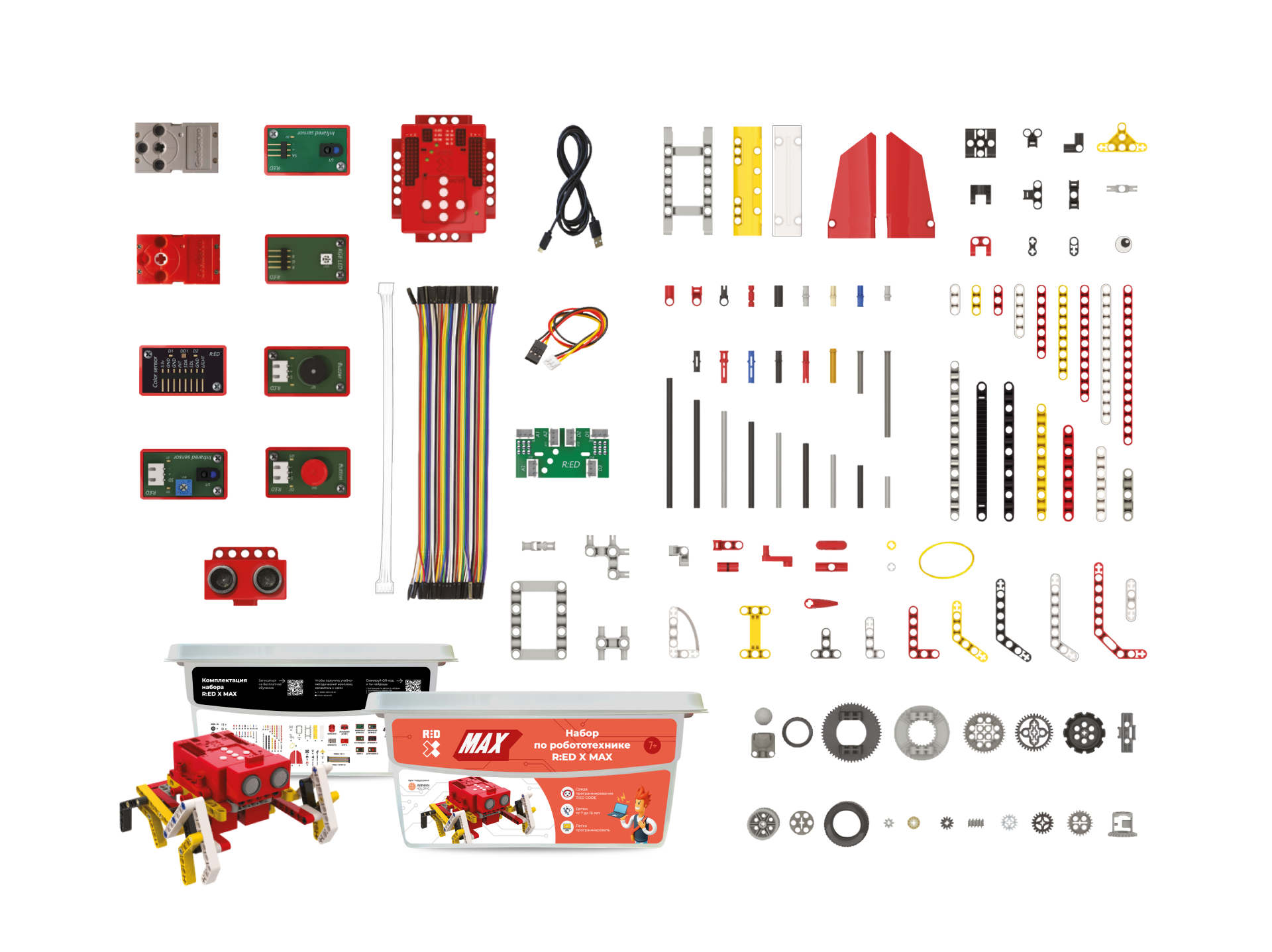 Комплекс образовательных инструментов для учащихся 1-6 класса, разработанный с учетом особенностей возраста, включающий робототехнический набор R:ED X и программное обеспечение R:ED CODE для прошивки контроллера, с возможностью программирования в 2-х средах программирования.