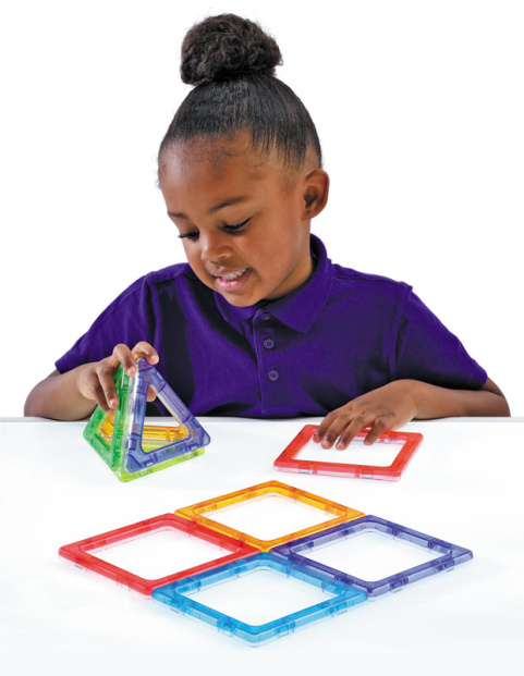 При помощи этого конструктора дети в процессе игры смогут уже в раннем возрасте развить пространственное мышление, осваивая работу с двух- и трёхмерными фигурами. Включает в себя полупрозрачные геометрические фигуры — квадрат и треугольник 5 цветов (красный, голубой, зеленый, оранжевый, синий).