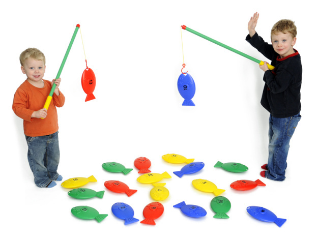 Комплектация: 20 рыбок 4-х разных цветов с нумерацией от 1 до 20 и 2 удочки из пластика.