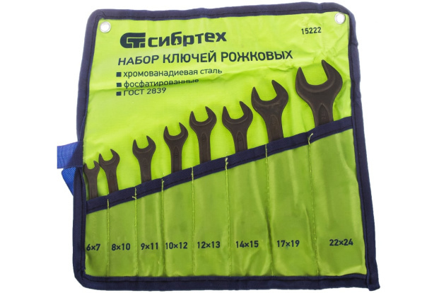 Набор рожковых ключей 6 - 24 мм поставляется в удобном подвесе с делениями, для хранения ключей различных размеров.