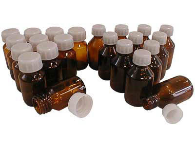Флаконы и банки снабжены винтовыми пластиковыми крышками.