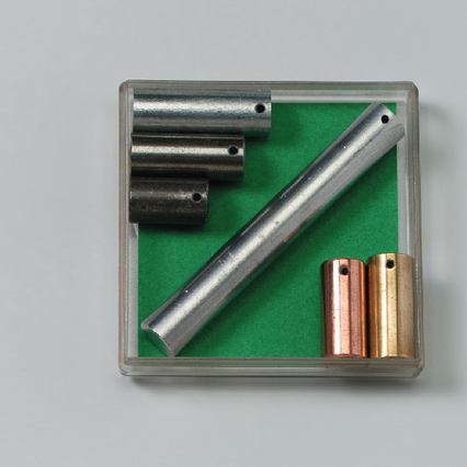 В наборе 6 цилиндров массой15 г., выполненных из разных металлов.