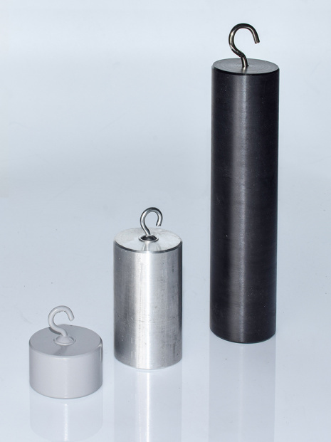 Набор содержит 3 тела из различных материалов. Тела представляют собой бруски цилиндрической формы с крючком на одном конце.