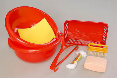 Комплектность: тазы – 2 шт., мыльница – 1 шт., щеточка для стирки – 1 шт., корзинка для белья – 1 шт., прищепки – 4 шт., сушилка – 1 шт., вешалка – 1 шт., руководство по эксплуатации – 1 шт.