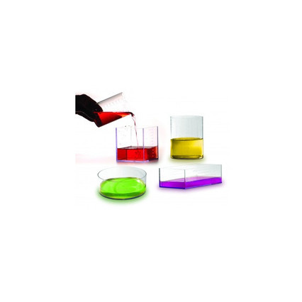Пять полых прозрачных пластиковых ёмкостей с делениями в мл (4 - объемом по 1 л, 1 - 0,5 л), в которые можно наливать воду. Ёмкости имеют форму куба, параллелограмма, цилиндра и усечённого цилиндра. С их помощью можно наглядно изучать соотношения между объёмами тел правильных геометрических форм.