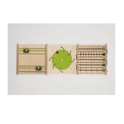 Основа и три панели: с двумя металлическими шарами, звучащими при вращении; с пощелкивающим колесом (деревянным диском с резиновыми «паучьими» ножками, при вращении которого раздаются щелчки); с деревянными шариками, имитирующими при медленном движении по различным поверхностям звук разных скребков. Звучащие и визуальные панели, подвешенные на стене, позволяют организовывать увлекательные игры, наблюдать различные зрительные эффекты, причудливую игру света и тени, создавать узоры, воспроизводить множество разнообразных звуков.