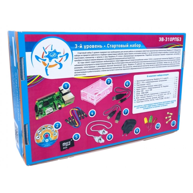 Нет ничего проще и удобней, чем сделать это с помощью данного стартового набора. Набор является образовательным и предназначен для тех пользователей, которые планируют использовать одноплатный компьютер как бюджетную и очень компактную замену полноразмерному персональному компьютеру. В комплекте уже есть все то, что необходимо для легкого запуска и работы компьютера. Набор является идеальным выбором для новичков поскольку содержит в комплекте диск с необходимым для работы программным обеспечением и подробное учебное пособие, повествующее о том, что делать дальше после того, как Вы осуществили первый запуск своей Raspberry Pi. Книга включает в себя целый комплекс пошаговых уроков, обучающих настройке одноплатного компьютера, приемам работы с операционной системой ОС Raspbian (разновидность Linux), а также помогающих получить первые навыки управления контактами GPIO одноплатного компьютера. По итогам пройденных уроков на основе светодиодов собирается имитация дорожного светофора под управлением программы на языке программирования Python.