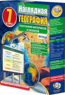 Интерактивное учебное пособие разработано с учётом ФГОС ООО и примерной программы по географии основного общего образования. Материал интерактивного учебного пособия «География материков и океанов. 7 класс» содержит темы курса географии 7 класса..