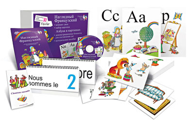 Комплектация: СD-диск; набор карточек «Азбука в картинках» - 26 шт. (размер 24х32); набор карточек «Лексические темы» - 96 шт. (размер 20х24); набор карточек «Лексические темы» - 44 шт. (размер 24х32); демонстрационные блокноты для составления дат - 2 шт.; песенники - раздаточный материал для учащихся – 10 шт.; методическое пособие, упаковочная коробка.