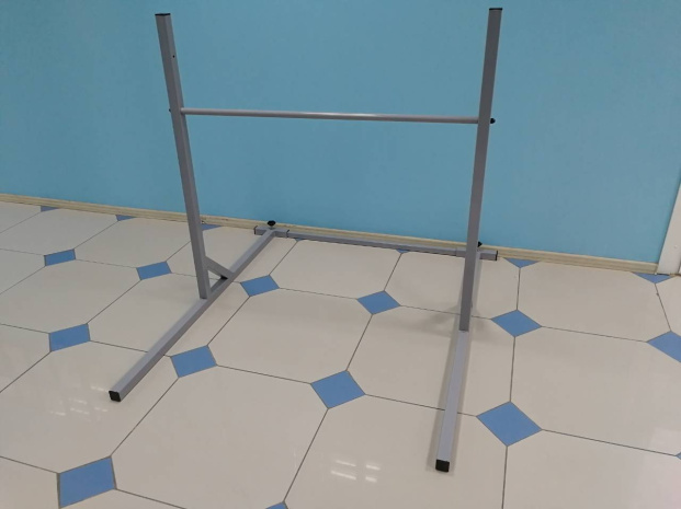 Перекладина представляет собой сборно-разборную конструкцию. Длина - 1440мм. Ширина -1200мм. Высота -1240мм Перекладина может устанавливаться на один из двух уровней. Высота грифа низкой перекладины для участников I - III ступеней - 90 см. Высота грифа для участников IV - IX ступеней - 110 см. Опоры и стойки изготовлены из профильной трубы 40х40мм, перекладина из трубы диаметром 27мм. Окрашена методом порошкового напыления