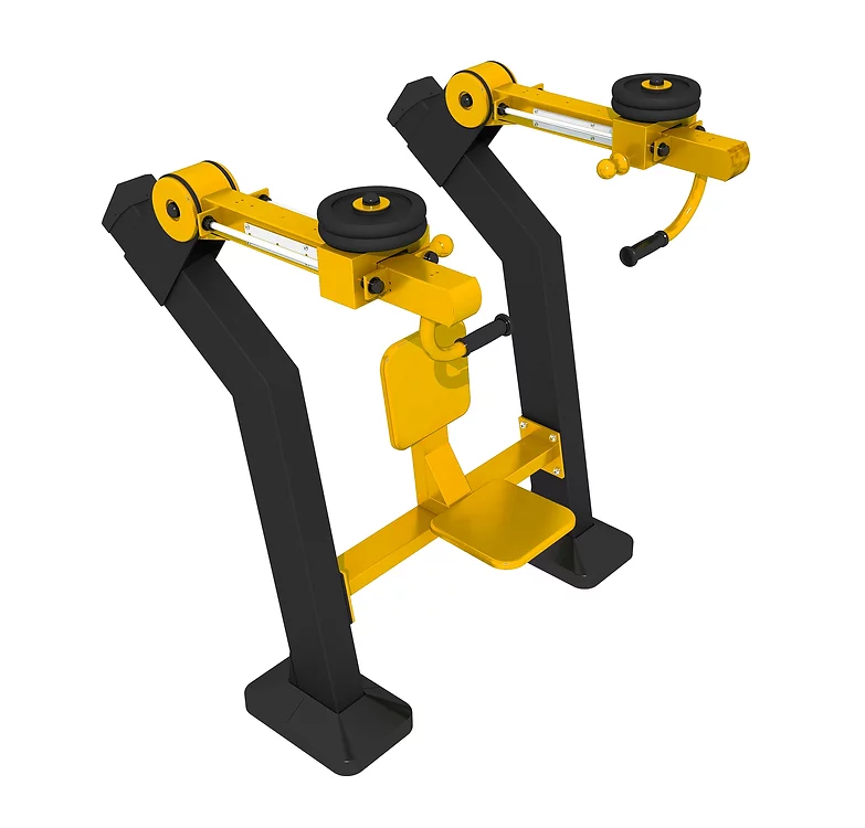 Отрегулируйте вес до своего уровня. Прижавшись спиной к спинке, выпрямите спину и отведите плечи назад. Поднимите руки тренажера над головой как можно выше, затем контролируемым движением вернитесь в исходное положение.
