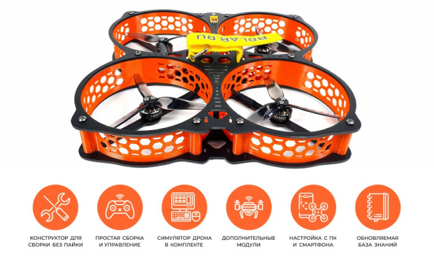 Набор для сборки безопасного дрона начального уровня для полётов на улице и в помещении. Предназначен для индивидуальных и групповых занятий, включает в себя все необходимые материалы, инструменты и инструкции. Доступны дополнительные компоненты. Сделано в России.