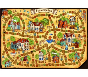 Уважаемые гости нашего городка! В Грамотейске начинается сезон суффиксов. Прекрасная пора! Мы с нетерпением ждём вас и уже видим, как по цветным камешкам скачут на одной ножке непоседливые туристы лет восьми-десяти и чуть старше. Скакать в Грамотейске можно с пользой. Даже с двумя! Во-первых, мы узнаем, что в городке живут мастера. Кто они по профессии - это ещё надо догадаться по "визитным карточкам". Например, как называют человека, который выпекает хлеб и булки? И слово должно быть с родственным корнем "пек", и суффикс хорошо бы подобрать правильный.. (задания на красных карточках). Если знакомство состоялось, ответ проверен - гость зарабатывает очко. Пекарь машет вслед игроку, а тот бежит дальше по дорожке... Во-вторых, название профессий может состоять из двух слов. И тут приходится объединять два родственных слова в одно, да ещё правильно выбрать соединительную гласную (задания на синих карточках). Например, если нашу дорожку проложил мастер, который занимается обтёской камня, то как звучит его профессия? Каменотёс!