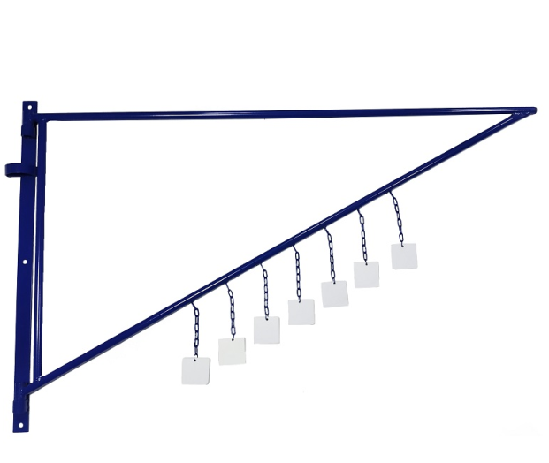 Измеритель высоты прыжка выполнен в виде поворотного кронштейна, складывающегося к стене. В "рабочем" (тренировочном) положении определитель высоты прыжка устанавливается перпендикулярно стене.