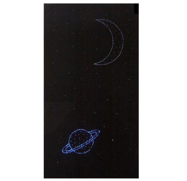 Настенное панно с мерцающими звездами на фоне темного неба. Мерцающие полумесяц, сатурн, звездный фон.