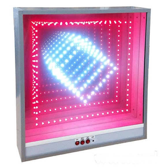 Имитация двух бесконечных туннелей на миниэлектролампах. Внешний квадратный туннель управляется с выносного пульта (тактильный режим). Внутренний круглый туннель управляется от внешних звуков, издаваемых человеком: хлопок в ладоши, топанье ногой, крик и т.п. Панель реагирует на эти звуки. Управление на лицевой панели кнопками, с интерактивного выносного пульта, или от внешних звуков, воспринимаемых встроенным микрофоном (акустический режим).