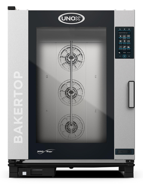 Пароконвектомат электрический UNOX XEBC-10EU-EPRM серии BakerTop MIND.Maps PLUS используется для выпечки кондитерских и хлебобулочных изделий и приготовления гастрономических блюд в пекарнях, кондитерских, ресторанах, столовых, на фабриках-кухнях, предприятиях торговли. Модель оснащена 9,5” емкостной сенсорной панелью управления MASTER.Touch, позволяющей создавать и сохранять до 384 программ, и интегрированным подключением Wi-Fi.
