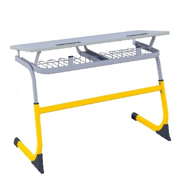 Основание металлическое, столешница ЛДСП, толщина 22 мм. С углом наклона столешницы. Размер столешницы 1200*500мм. Кромка ПВХ толщиной 2мм. В столешницу встроен пластиковый пенал 2 шт. Наличие крючков для рюкзаков- 2шт. Металлокаркас из плоскоовальной трубы сборно-разборный.