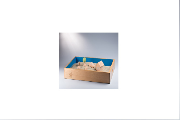 - Песочница. Традиционная песочница представляет собой деревянный ящик размером 70х50х11 см. Выбранный размер не случаен. Считается, что именно такие параметры в большей степени соответствуют среднестатистическому объему поля зрительного восприятия человека. Дно и борта с внутренней стороны ящика окрашены в голубой цвет и символично воспринимаются человеком как вода и небо.