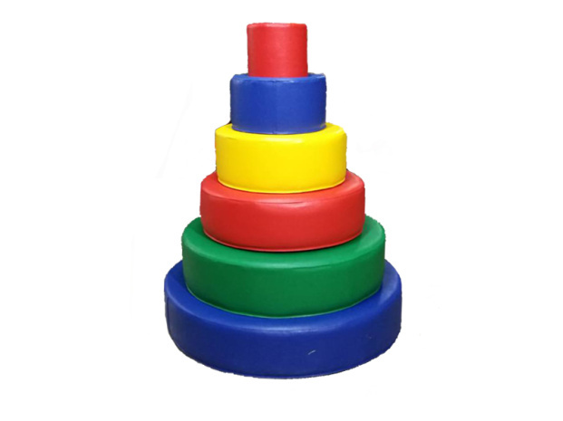 Пирамида состоит из 6 мягких модулей: цилиндра и 5 колец.Цилиндр представляет собой стержень, на который необходимо нанизывать колечки, для получения фигуры в виде конуса.Яркая пирамидка поможет малышам запомнить основные цвета, научит сравнивать размеры «больше-меньше».Во время игр развивается крупная моторика, ориентация в пространстве, координация движений. Групповая игра учит детей взаимодействовать, работать в коллективе.Мягкомодульная пирамида предназначена для детских садов, игровых комнат, развлекательных центров.