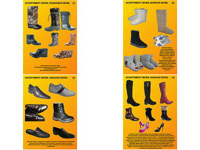 4. Ассортимент обуви. Кожаная обувь. Часть 2 Вы можете заказать как полный комплект плакатов, так и отдельные плакаты. При заказе неполного комплекта, цена за 1 плакат - 1200 руб.