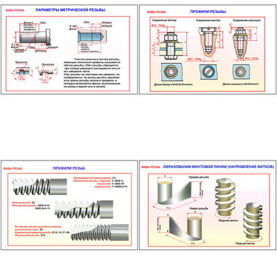 Плакаты ПРОФТЕХ Виды резьбы (5 пл, винил, 70х100)