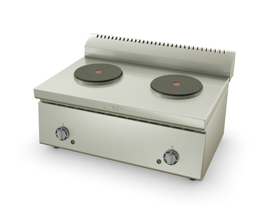 Настольная электроплитаATESY«Таверна»-2005 двухконфорочная предназначена для приготовления первых, вторых и третьих блюд в наплитной посуде.