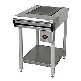 Плиты электрические предназначены для тепловой обработки полуфабрикатов в функциональных емкостях, варки, жарки, тушения и пассерования на предприятиях общественного питания. Исполнение ПЭ-0,17СП: плита одноконфорочная без жарочного шкафа, углеродистая сталь с покрытием, рабочий стол плиты из н/стали. Каркас из черного металла с полимерным покрытием