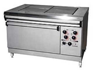 Плиты электрические предназначены для тепловой обработки полуфабрикатов в функциональных емкостях, варки, жарки, тушения и пассерования на предприятиях общественного питания. Исполнение ПЭ-0,48Ш: комбинированная 4-х конфорочная плита с жарочным шкафом. Все облицовки из нержавеющей стали, каркас крашеный