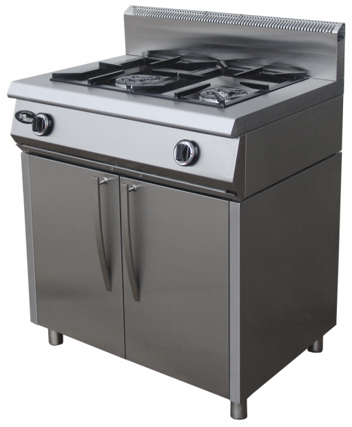 - Плита имеет 2профессиональныегорелкикласса Heavy Duty и газ-контроль всех горелок плиты.
