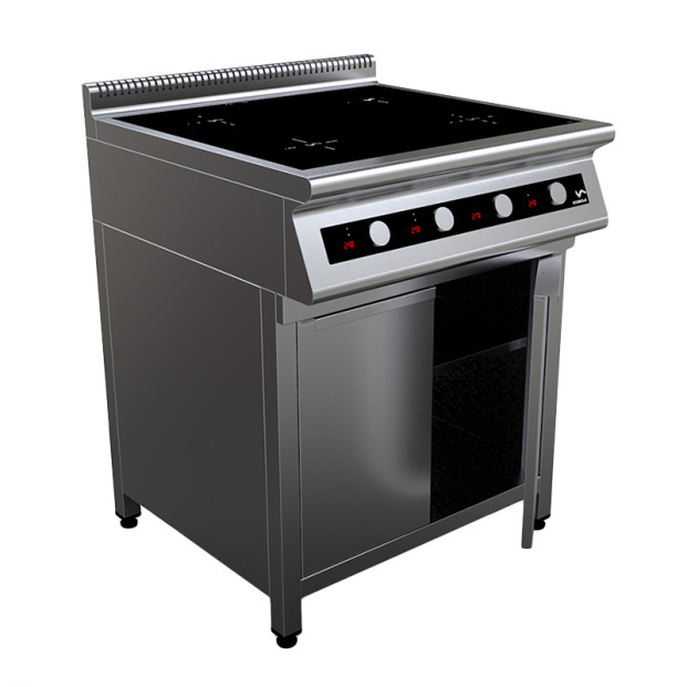 Индукционная плита на закрытой подставке Кобор I7-4S2 предназначена для приготовления различных блюд в наплитной посуде на предприятиях общественного питания и торговли. На полке под плитой можно разместить котлы, кастрюли и прочие габаритные кухонные принадлежности.