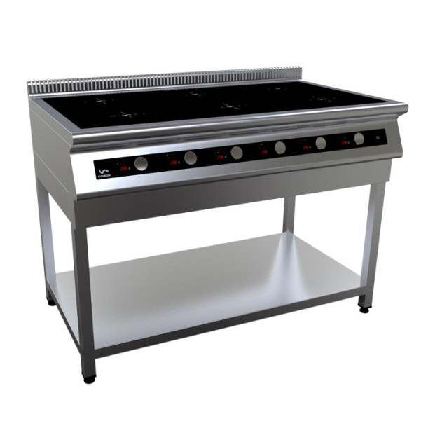 Индукционная плита на открытой подставке Кобор I7-6S предназначена для приготовления различных блюд в наплитной посуде на предприятиях общественного питания и торговли.На полке под плитой можно разместить кастрюли и прочие габаритные кухонные принадлежности.