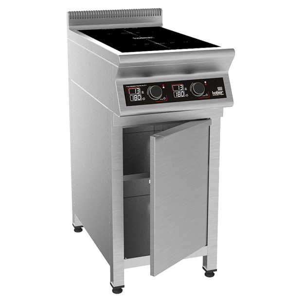 Индукционная плита на закрытой подставке Кобор I9-2S2 предназначена для приготовления различных блюд в наплитной посуде на предприятиях общественного питания и торговли. На полке под плитой можно разместить котлы, кастрюли и прочие габаритные кухонные принадлежности.