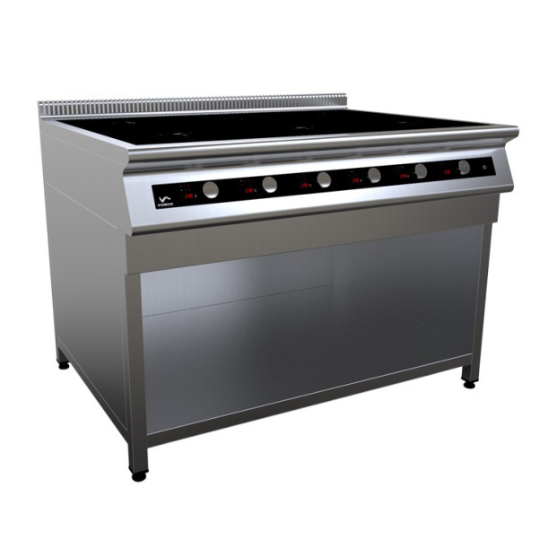 Индукционная плита на полузакрытой подставке Кобор I9-6S1 предназначена для приготовления различных блюд в наплитной посуде на предприятиях общественного питания и торговли. На полке под плитой можно разместить котлы, кастрюли и прочие габаритные кухонные принадлежности.