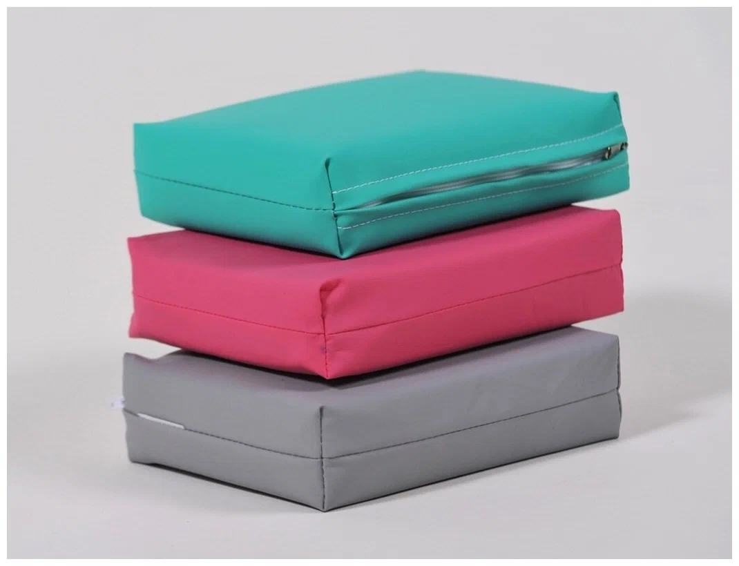 - Чехол подушки - изготовлен из медицинской клеенки с ПВХ покрытием (материал на тканой основе из полиэфира, полиамида с ПВХ покрытием. Так как молекула воздуха меньше, чем молекула воды, то ткань 100% влагонепроницаема и обладает свойствами паропроницаемости (возможность «дышать»), с замком на молнии для удобства чистки;