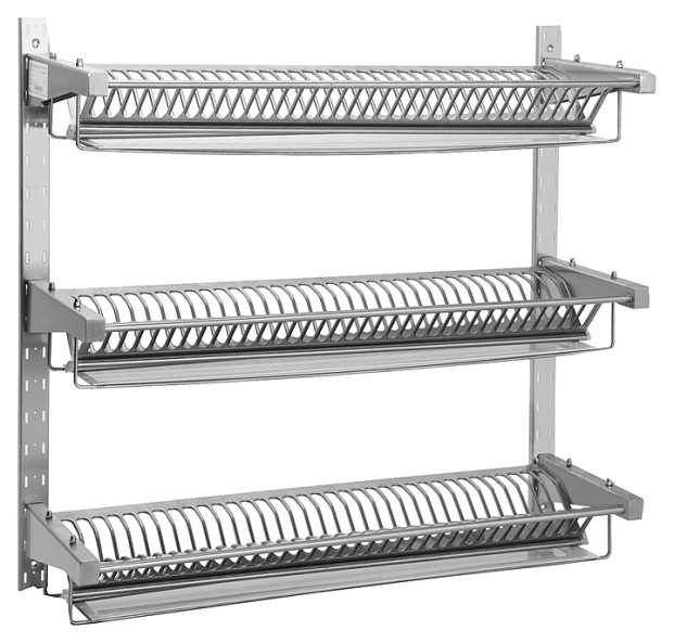 Полка для сушки тарелок ПСТ-3 (1000x300 мм) настенная, 3 кассеты, 110 тарелок, с лотком для сбора воды (модель 2019)