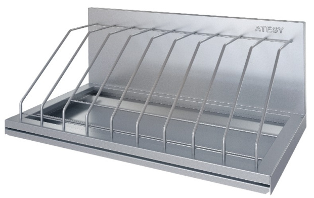 - Полка имеет отделения, выполненные из нержавеющего прутка (сталь AISI 304), для вертикального размещения разделочных досок.