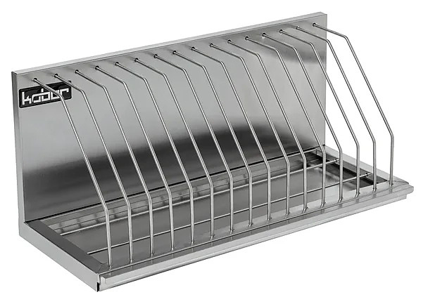 Полка настенная для крышек Кобор ПКК-30/35 предназначена для сушки и хранения крышек кастрюль и баков в моечных отделениях, горячих цехах.
