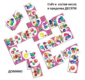 В наборе: 1 стартовая карточка, 30 карточек-доминоИгра-занятие построена в форме домино, в котором можно менять уровень сложности задач. Счётный материал – воздушные шарики, их держат в руках персонажи, изображённые на карточках.