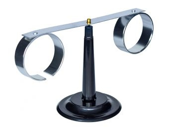 Прибор для изучения правила Ленца представляет собой стойку с коромыслом (длиной 150 мм) и двумя алюминиевыми кольцами, одно из которых имеет прорезь.