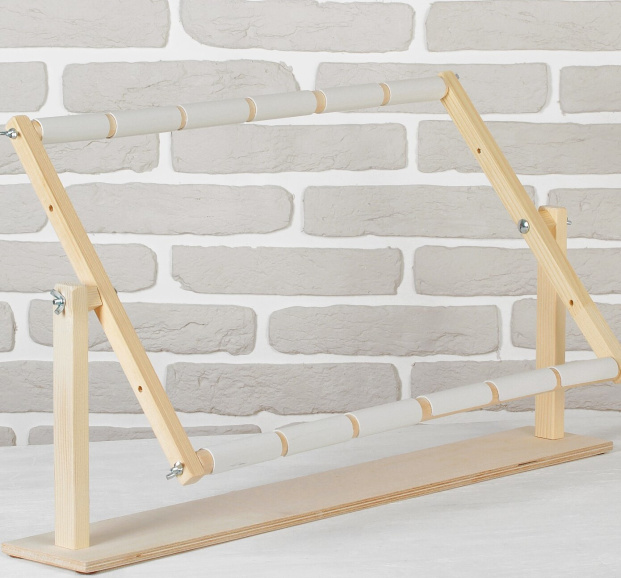 Рамка состоит из четырёх частей: двух передвижных круглых реек и двух прямоугольных боковин с отверстиями. Крепление очень лёгкое и не требует применения усилий при использовании. Подставка освободит руки, ведь вышивку не надо будет держать на весу