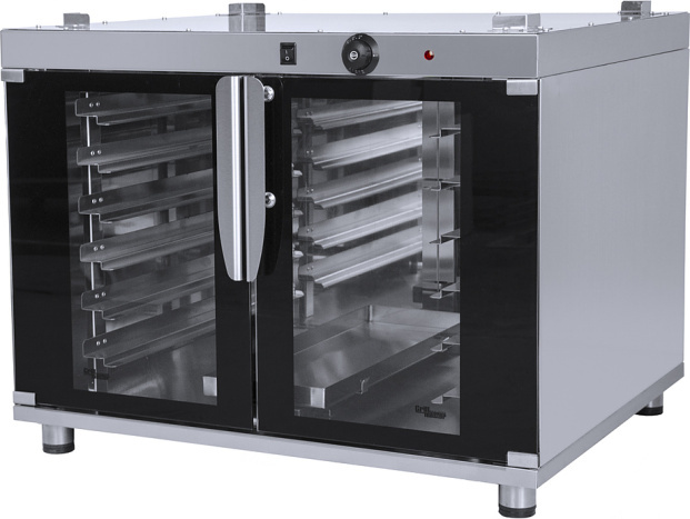 идеально подходит в качестве стенда для конвекционной печи арт .22227 Терморегулятор 30-120 С, пароувлажнение, распашные стеклянные двери с чёрной окантовкой, плавная регулировка температуры, 8 направляющих под противни 600х400 или 325х530 (GN 1/1); шаг уровней 75 мм, расстоечный шкаф выполнен полностью из нержавеющей стали, габаритные размеры нетто 850х730х660, 55 кг, габариты брутто 950х810х910, 70 кг, 1,1 кВт, 220В