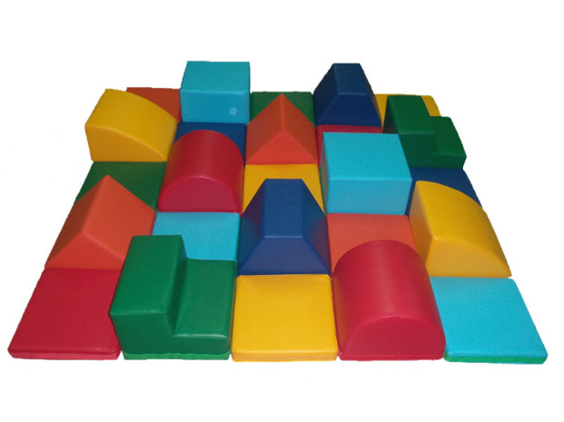 Разноуровневый игровой ковер – это набор мягких модулей для подвижных игр детей, состоящий из 13 объемных и 12 плоских элементов, которые крепятся между собой с помощью липучки в произвольном порядке. Набор предназначен для создания мягкой игровой зоны, разнообразных полос препятствий и конструирования. Во время игры развивается двигательная активность, координация движений, крупная моторика. Дети, самостоятельно создавая различные конструкции и сооружения, развивают воображение, память, логику и мышление, изучают форму и свойства объемных геометрических фигур.