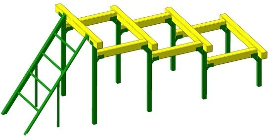 Стальной каркас из проф.трубы, дерево хвойных пород.