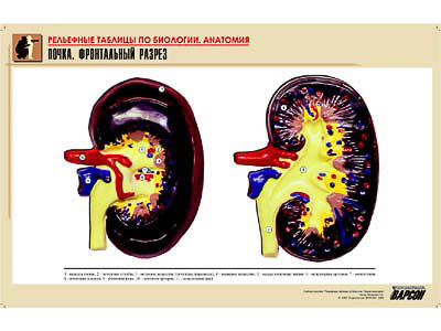 Рельефная таблица "Почка. Фронтальный разрез" (формат А1, матовое ламинир.)