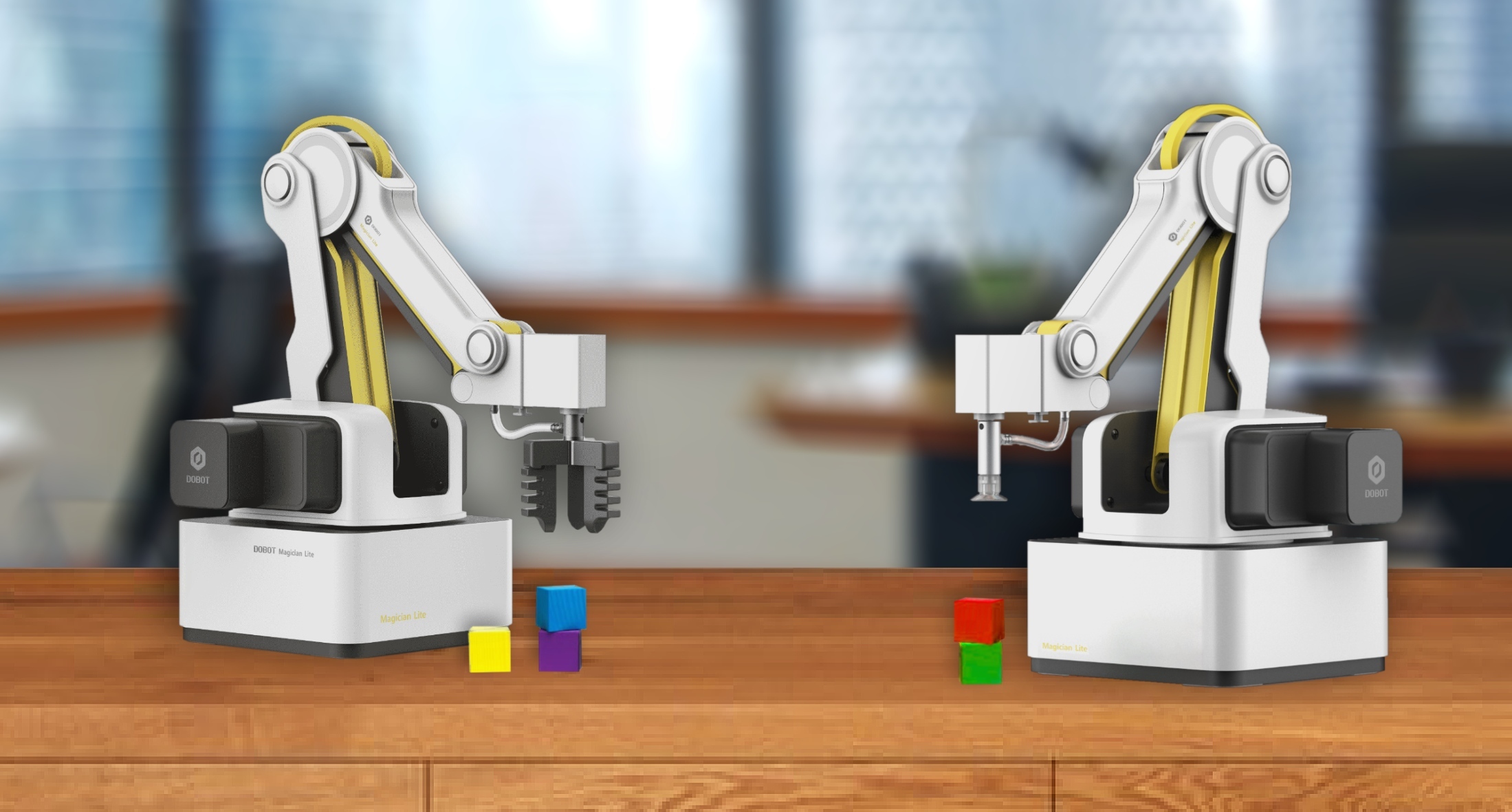 Начните изучение технологий будущего в начальной школе с безопасным и современным манипулятором DOBOT Magician Lite. Организуйте взаимодействие человека и робота на новом уровне, создав совместную систему производства с их полным взаимодействием.