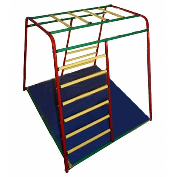 Предназначен для детей от 1 до 7 лет. Комплектация: металлический каркас; вертикальная длинная и короткая лестницы; горизонтальная лестница — рукоход; два турника; мат складной. Габаритные размеры: высота 1170 мм, длина 1310 мм, ширина 1070 мм. Вес комплекса 22 кг. Размер мата: длина 1250 мм, ширина 950 мм, толщина 40 мм. Производство Россия.