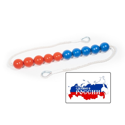 Десять деревянных бусин, нанизанных на прочной верёвке, разбиты на пятёрки красного и синего цвета. Яркие большие бусины хорошо видны всему классу. Учитель может просить детей повторить его действия, сидя за партами. Для этого дети пользуются соответствующими бусами для ученика. Имеются методические рекомендации для учителя (приобретаются отдельно).