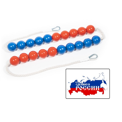 Двадцать деревянных бусин, нанизанных на прочной верёвке, разбиты на пятёрки красного и синего цвета. Яркие большие бусины хорошо видны всему классу. Учитель может просить детей повторить его действия, сидя за партами. Для этого дети пользуются соответствующими бусами для ученика. Имеются методические рекомендации для учителя (приобретаются отдельно).